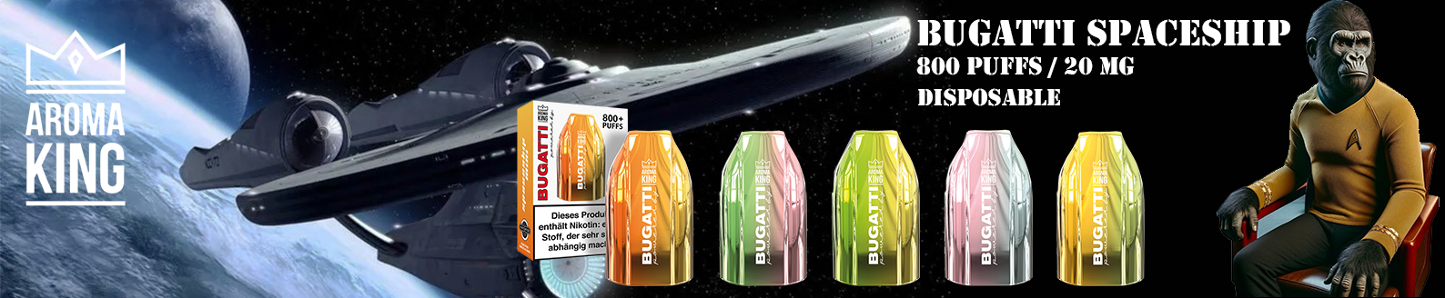 zu einem Blickfang, sondern auch zu einem Meisterwerk der Innovation.Mit dem Aroma King Bugatti Spaceship treten Sie in eine Welt des Luxus ein, die speziell für den anspruchsvollen Genießer konzipiert wurde. Dieses exklusive Vape-Gerät setzt neue Maßstäbe in der Vaping-Industrie und bietet Ihnen ein unvergleichliches Dampferlebnis, das Sie immer wieder aufs Neue begeistern wird.Besuchen Sie uns jetzt und erleben Sie die Zukunft des Vapings mit dem Aroma King Bugatti Spaceship – Ihrem Tor zu einem erlesenen Lifestyle voller Genuss und Stil.