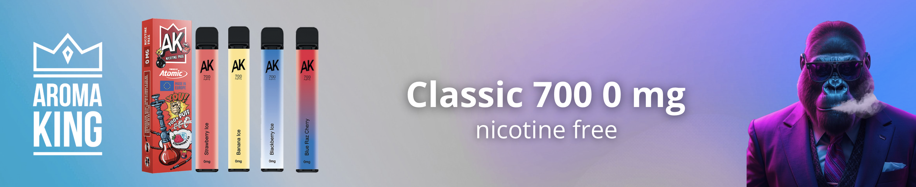 Aroma King Classic 700 – 0 mg Testpackage (13 Flavours + Lanyard)Das ideale Set für alle, die vollen Geschmack ohne Nikotin geniessen möchten.Mit dem Aroma King Classic 700 Testpackage (0 mg) erhalten Sie gleich 13 verschiedene Geschmacksrichtungen – perfekt zum Ausprobieren, Geniessen oder für den bewussten Verzicht auf Nikotin.Inhalt des Testpackages:Ice CreamGrape BullEnergy DrinkRed Apple AnisGreen AppleCherry IceCool MangoPassion FruitBlackberryBubble GumWatermelonStrawberryBlueberryLanyard (Umhängeband) für maximalen Komfort unterwegsProduktdetails:0 mg Nikotin – komplett nikotinfreiBis zu 700 Züge pro GerätEinweggeräte (kein Aufladen, kein Nachfüllen nötig)Sofort einsatzbereit – einfach auspacken und geniessenDieses Testpackage ist perfekt für alle, die Geschmack und Vielfalt ohne Nikotin erleben möchten. Ob fruchtig, süss oder erfrischend – die grosse Auswahl bietet für jeden Moment den passenden Geschmack.Preisvorteil:Statt CHF 116.– jetzt nur CHF 39.90 – ein unschlagbares Angebot!Fazit:Maximale Auswahl, voller Geschmack –ganz ohne Nikotin. Perfekt zum Testen und Geniessen.